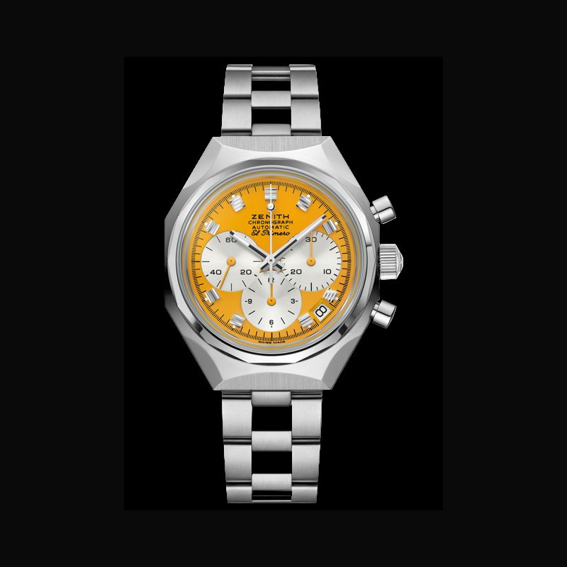+ Plus de caractéristiques : | Mouvement Mouvement : El Primero 400 Fréquence : 36 000 Alt/h (5 Hz) Réserve de marche : 55 heures Boitier Acier Inoxydable Cadran USM Golden Yellow Bracelet / Boucles Bracelet « ladder » en acier inoxydable |