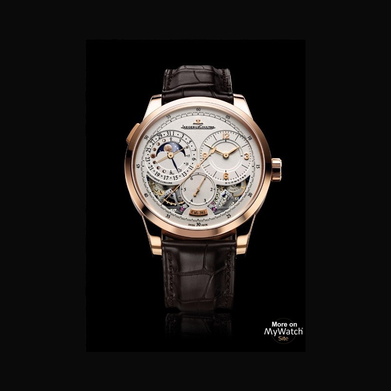 Le Calibre Dual-Wing 381 de Jaeger-LeCoultre est conçu en sorte de parvenir à la précision la plus élevée possible pour un mouvement mécanique. Et, grâce à son concept unique, la montre atteint un niveau d’exactitude sans précédent pour une montre à complication. Le mouvement est divisé en deux sections, à l’image de deux ailes – d’où son nom de Dual-Wing. De part et d’autre, un barillet et son ressort moteur qui garantit une réserve de marche de 50 heures. Le premier pour les heures, les minutes, les secondes, la seconde foudroyante, le quantième et la phase de lune et le second entièrement dévolu au mécanisme de l’échappement afin d’assurer un approvisionnement constant en énergie. Tous deux sont remontés par l’entremise de la couronne : une rotation imprimée dans le sens horaire arme le barillet de la mesure du temps (l’échappement) alors que le même mouvement effectué dans le sens antihoraire remonte la réserve de marche des différentes fonctions (heures, minutes, secondes, seconde foudroyante, quantième et phase de lune).