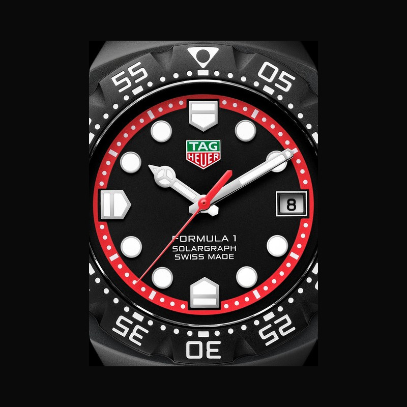 En plus du mouvement, l’utilisation du TH-Polylight, un nouveau matériau réputé pour sa légèreté, sa durabilité, ses possibilités infinies en termes de couleur et sa capacité à optimiser l’ergonomie et l’esthétique, marque une autre étape importante dans l’engagement de TAG Heuer en faveur de l’innovation. Le design emblématique retravaillé de la lunette bidirectionnelle, chère au cœur des fans de la collection TAG Heuer Formula 1, est également réalisée en TH-Polylight. L’expérience sensorielle est affinée, permettant à un son mécanique d’être émis lors des rotations de la lunette pour une pointe de sophistication au toucher.