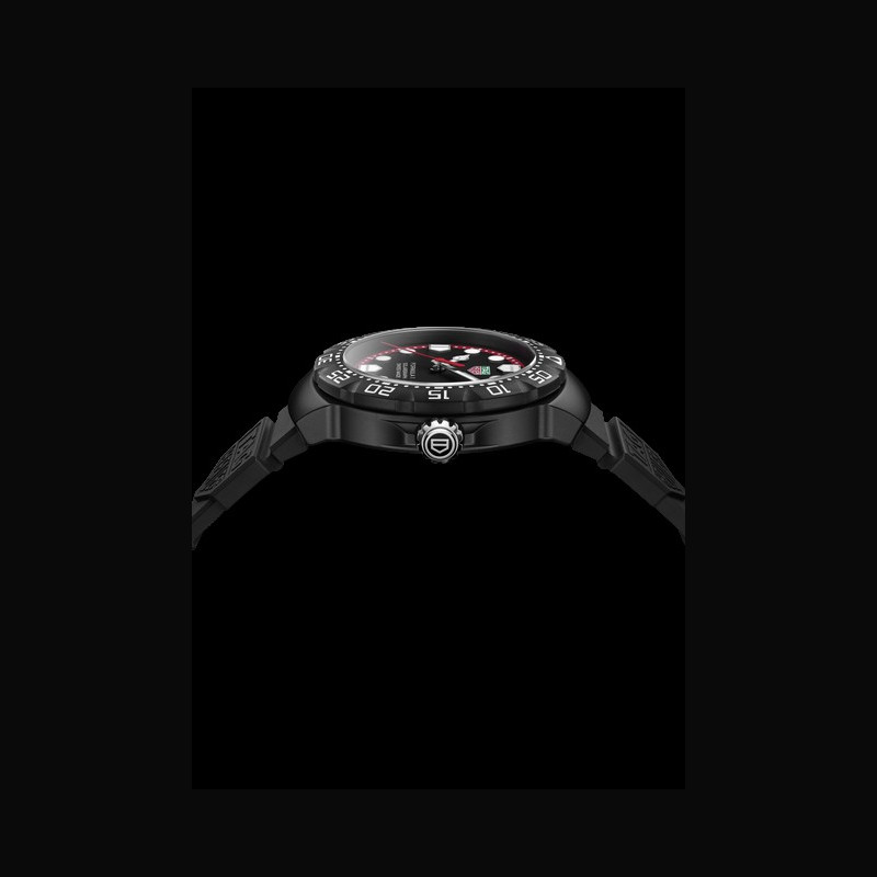 Plus de caractéristiques : | Mouvement Calibre TH50-00 Boitier Acier sablé DLC noir Corne à corne : 45,2 mm Cadran Cadran en opaline noire Bracelet / Boucles Bracelet en caoutchouc noir Boucle en acier DLC noir ; inscription TAG Heuer gravée Disponibilité mondiale 02/05/2025 (GP de Miami) Date de prévente : 29/04/2025 à 14 h 00 CET |