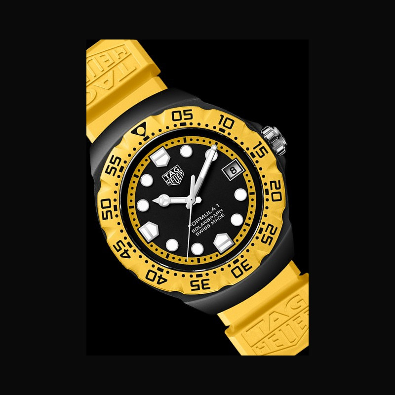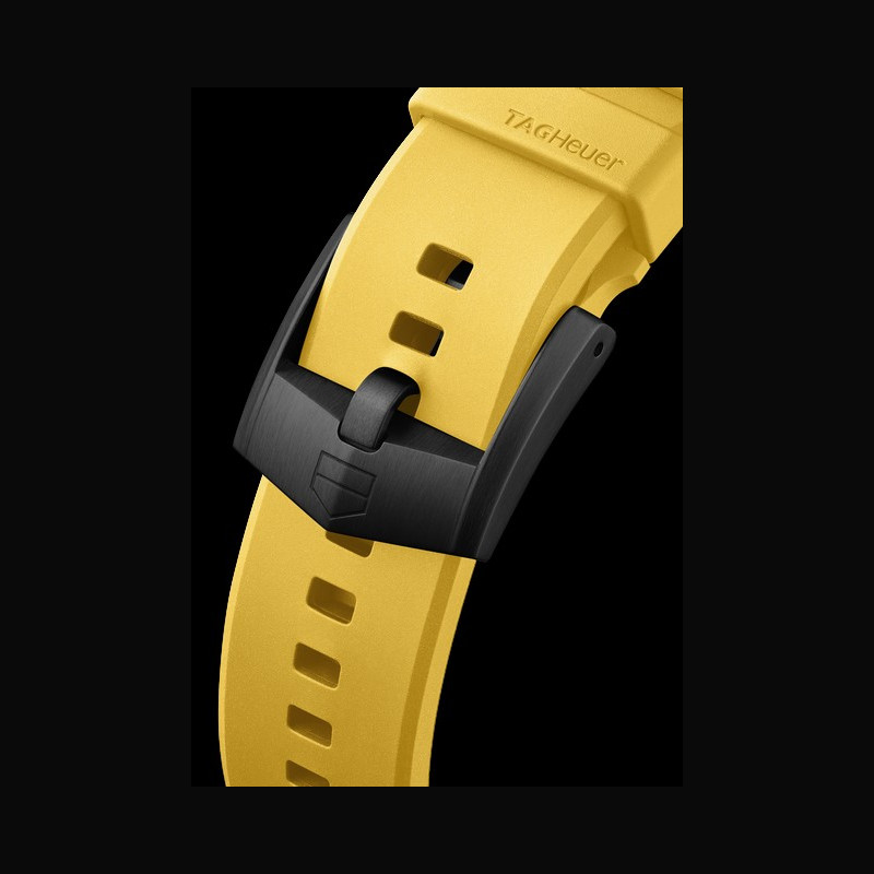 + Plus de caractéristiques : | Mouvement Calibre TH50-00 Boitier Acier sablé DLC noir Corne à corne : 45,2 mm Cadran Cadran en opaline noire Bracelet / Boucles Bracelet en caoutchouc jaune Boucle en acier DLC noir ; inscription TAG Heuer gravée Disponibilité mondiale 24/10/2025 (GP du Mexique) Date de prévente : 21/10/2025 à 15 h 00 CET |