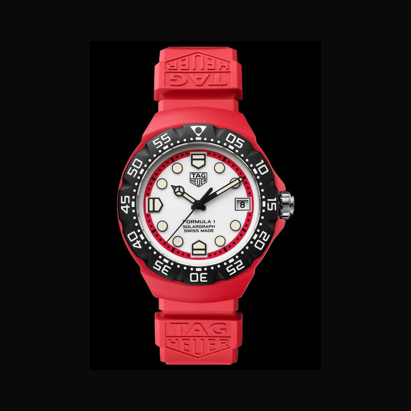 + Plus de caractéristiques : | Mouvement Calibre TH50-00 Boitier Bio-polyamide rouge Corne à corne : 45,2 mm Cadran Cadran en opaline blanche Bracelet / Boucles Bracelet en caoutchouc rouge Boucle en acier DLC noir ; inscription TAG Heuer gravée Disponibilité mondiale 05/09/2025 (GP d’Italie) Date de prévente : 02/09/2025 à 8 h 00 CET |