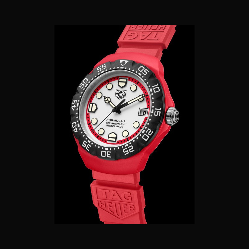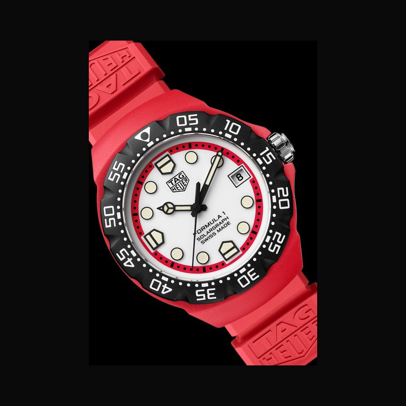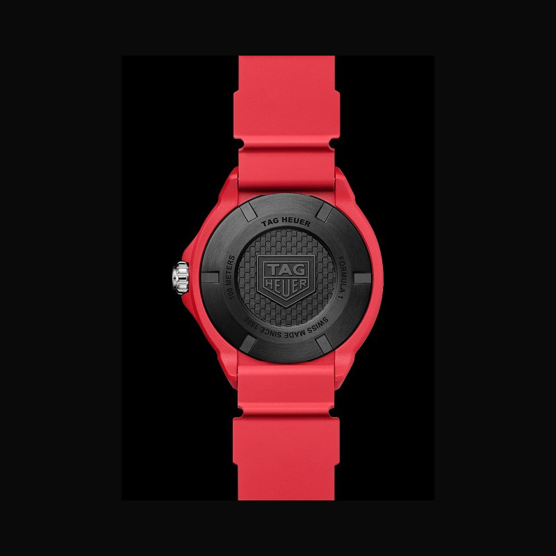 En plus du mouvement, l’utilisation du TH-Polylight, un nouveau matériau réputé pour sa légèreté, sa durabilité, ses possibilités infinies en termes de couleur et sa capacité à optimiser l’ergonomie et l’esthétique, marque une autre étape importante dans l’engagement de TAG Heuer en faveur de l’innovation. Le design emblématique retravaillé de la lunette bidirectionnelle, chère au cœur des fans de la collection TAG Heuer Formula 1, est également réalisée en TH-Polylight. L’expérience sensorielle est affinée, permettant à un son mécanique d’être émis lors des rotations de la lunette pour une pointe de sophistication au toucher.