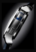 | Plus de caractéristiques : | Mouvement avec tourbillon breveté Diamètre: 36.40 mm Epaisseur: 9.80 mm Mouvement complet: 443 composants Cage de tourbillon: 87 composants Poids de la cage: 0.36 g 50 rubis Rubis dans des chatons en or Réserve de marche : 72 heures Deux barillets coaxiaux en série à rotation rapide Balancier à inertie variable avec vis réglantes en or Fréquence : 21’600 alternances/heure Spiral avec courbe terminale de Phillips Platines et ponts en maillechort perlées. grenées Cage de tourbillon inclinée à 25°: 1 rotation en 24 secondes Piliers de cage en Avional Ponts en titane Masse d’équilibrage en or Boîtier Poussoir latéral en or gris comportant une gravure «GMT» sur fond martelé main Gravure en relief «Greubel Forsey» sur le fond martelé main Numéro individuel gravé à la main sur le fond Bracelet en alligator bleu ou noir. cousu main Boucle déployante en or gris. logo Greubel Forsey gravé à la main |