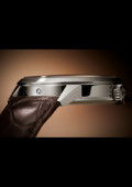 Avec leur fond saphir protégé par un couvercle à charnière et leurs attaches droites, les quantièmes perpétuels de style « Officier » à aiguille de date rétrograde figurent parmi les modèles les plus recherchés par les amateurs de pièces rares – surtout lorsqu’ils sont dotés d’un cadran et d’un boîtier entièrement gravés à la main, comme la référence 5160/500G-001 en or gris, lancée en 2016. Patek Philippe réinterprète ce modèle d’exception dans une version en or rose dotée d’un cadran en or opalin argenté animé par des chiffres Breguet appliques en or gris noircis et des aiguilles de type « poire » en or jaune, également noircies. Équipé du calibre 26-330 S QR à remontage automatique, ce nouveau quantième perpétuel rétrograde Haut Artisanat référence 5160/500R-001 remplace la précédente version en or gris.