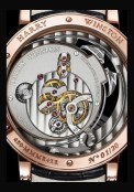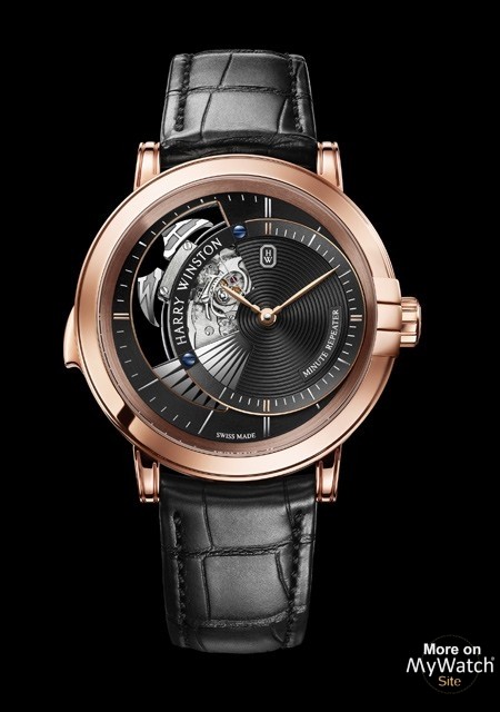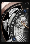 | Plus de caractéristiques : | Mouvement Diamètre : 25.5 mm Epaisseur : 5.5 mm 369 composants 34 rubis Réserve de marche : 38 heures Barillet 1 barillet Balancier à inertie variable : Alt. / heure 21’600 (3Hz) Spiral plat Platine anglée main. perlée. surface finement microbillée Finitions du mouvement : Côtes de Genève Angles polis à la main Marteaux avec lettres H et W en positif Boîtier Or rose 18K Poli. triples arches Harry Winston à 3 heures Cadran Fond noir satiné. brossé circulaire Large ouverture sur les marteaux Heures et minutes excentrées en appliques. décor spirale au centre. saphir fumé. index décalqués. biseaux rhodiés ou or rose Bracelet Alligator cousu main Boucle déployante en or rose 18 carats |