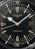 Les index, les chiffres et les aiguilles, garnis de Super LumiNova® se détachent sur le cadran noir laqué, afin d’offrir une lisibilité optimale. Cette dernière est accentuée par la typographie sobre et nette des chiffres, 6, 9 et 12. La boîte en acier traité PVD noir de 42 mm abrite désormais un mouvement mécanique automatique exclusif à Longines et arbore sur son fond vissé une frappe de plongeur. Un bracelet caoutchouc noir de type milanais avec boucle déployante en titane traitée en PVD noir et rallonge de plongée complète ce modèle.