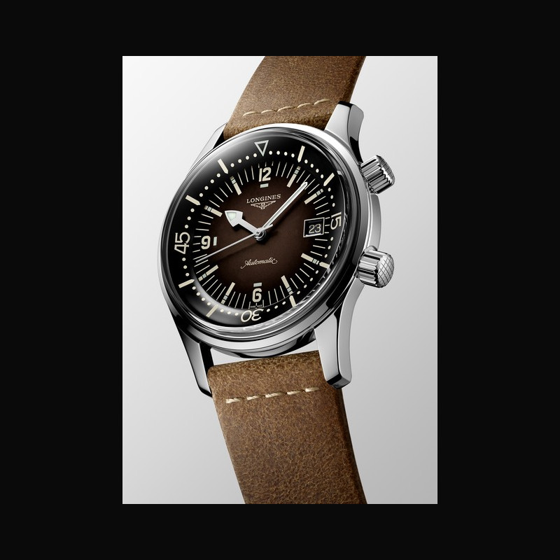 Le cadran bleu ou brun dégradé arbore des aiguilles lumineuses, des index entrecoupés de carrés luminescents et des chiffres arabes rehaussés de rectangles de Super-LumiNova® pour assurer une lisibilité optimale. Une réminiscence des codes de la discipline à laquelle cette montre était initialement destinée. A l’image du modèle d’inspiration, une frappe représentant un plongeur orne le fond du boîtier de 42mm de ces pièces. Un bracelet en cuir bleu structuré ou brun se conjuguent avec harmonie aux couleurs du cadran. Ces nouveaux modèles de The Longines Legend Diver Watch bénéficient d’une garantie de 5 ans.