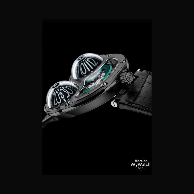 | Plus de caractéristiques : | Mouvement Mécanisme tridimensionnel conçu par Jean-Marc Wiederrecht/Agenhor Rouages et organe réglant Girard-Perregaux 36 rubis (tous fonctionnels) 304 composants Fréquence : 28'800 alternances par heure Rotor de remontage automatique 'mystérieux' en or 22 carats vert en forme d'astéro-hache Informations pour l'indication des heures et des minutes transmises par des roulements à billes en céramique à des aiguilles découpées au laser Boîtier en titane avec traitement PVD noir 53 composants Cadran Dômes rotatifs en aluminium 0.58 g Repères pour heure et minutes Bracelet alligator noir cousu à la main avec boucle déployante spécifique en or 18 carats et titane |