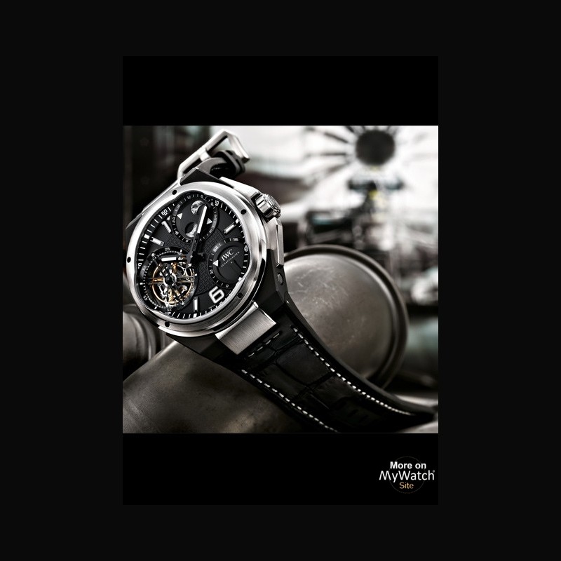 Ce modèle de 46 mm de diamètre est le fer de lance des nouvelles Ingenieur créées par la maison IWC pour célébrer son partenariat avec MERCEDES AMG PETRONAS Formula One®. Visible au dos du boîtier en platine et céramique noire, son calibre à remontage manuel est régulé par un tourbillon à force constante entraînant une aiguille de petite seconde.