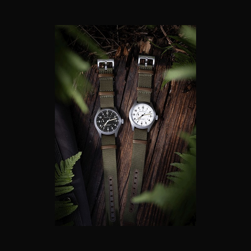 Bien que le boîtier conserve la forme Khaki Field emblématique, il a été soigneusement adapté pour accueillir le nouveau mouvement et arbore une finition sablée raffinée. Disponible avec un cadran classique noir ou blanc, chaque montre est livrée avec un bracelet à trois rangs en acier inoxydable avec fermoir papillon ou un bracelet NATO vert avec des passants en cuir marron. Le système EasyClick du bracelet métal permet de changer rapidement de bracelet lors de vos déplacements.