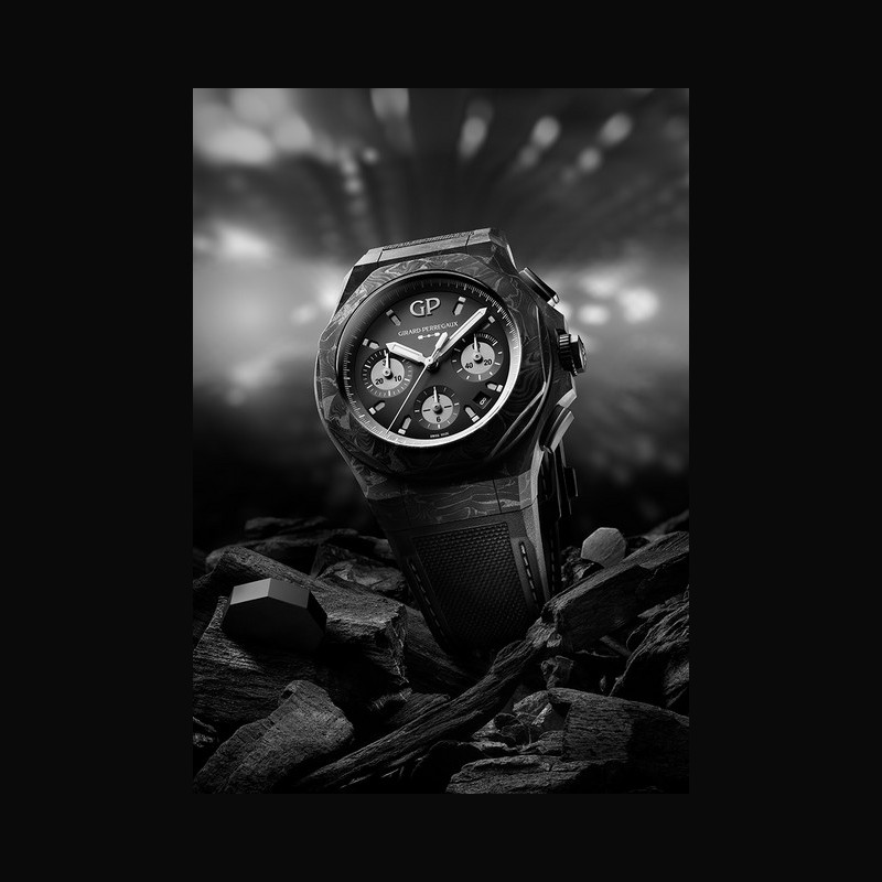 Depuis l'avènement de la Laureato Absolute, Girard-Perregaux a régulièrement employé de nombreux matériaux surprenants, comme la glace saphir métallisée, le Carbon Glass et le Rubber Alloy. Aujourd'hui, la Manufacture perpétue cette philosophie avec un nouveau modèle, la Laureato Absolute 8Tech, une montre logée dans du composite carbone/titane fabriqué suivant un procédé innovant et unique en son genre.
