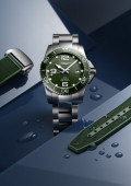 Après le bleu, le gris et le noir, la couleur verte vient désormais sublimer la collection HydroConquest. La version vert kaki arbore sur sa lunette un insert en céramique de la même teinte que son cadran, soulignant sa silhouette sportive et moderne. Monté sur un bracelet en acier ou sur un bracelet en caoutchouc vert, son boîtier disponible en deux tailles (41 ou 43 mm de diamétre) renferme un mouvement mécanique à remontape automatique (calibre L888.5).
