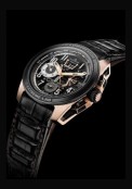 Le cadran largement ajouré permet de contempler, à travers le verre saphir, les détails de la structure du calibre. Le revêtement en PVD noir de divers composants du mouvement forme un saisissant contraste avec les chiffres et les aiguilles afin de donner à ce chronographe technique une lisibilité maximale en toute situation.