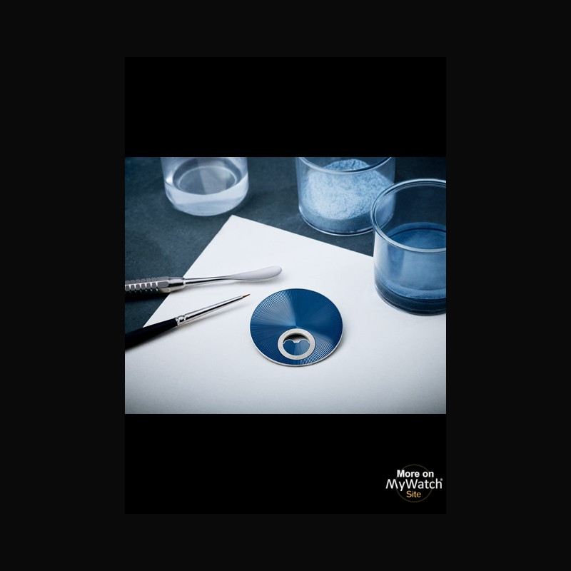 Cadran en émail bleu guilloché à la main L’élégance de la nouvelle Master Ultra Thin Moon Enamel tient au caractère affirmé de son cadran guilloché émaillé bleu. Un bleu profond et envoûtant que viennent rehausser les motifs géométriques et l’effet de relief caractéristiques du guillochage, une technique de décoration traditionnelle plus que jamais au goût du jour. Réintroduit depuis 1996 au sein de la Manufacture, l’émaillage relève lui aussi d’un savoir-faire séculaire. Réalisé à la main par quelques artisans qui sont formés en interne au sein même de la Manufacture, l’émaillage demande une concentration extrême, une infinie patience et une méticulosité sans faille. Des qualités nécessaires pour le travail du guillochage et l’application de la couche d’émail translucide bleu.
