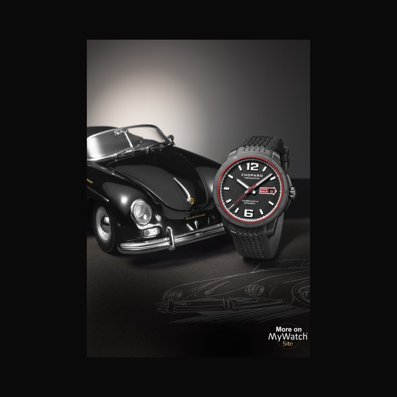 Le lien désormais indissociable entre Chopard et le classicracingest né de la passion personnelle de Karl-Friedrich Scheufele, coprésident de Chopard, pour les voitures de collection. Un attachement matérialisé en 1988, lorsque la Manufacture devientle partenaire et chronométreur officiel de la célèbre Mille Miglia. Cette compétition d’endurance, qui voit s’affronter chaque printemps plus de 400 automobiles classiques sur une distance de mille milesentre Brescia et Rome, sillonnede sublimes paysages italiens. Qualifiée de « plus belle course du monde » par Enzo Ferrari, elle constitue la source d’inspiration d’une collection horlogère éponymecréée par Chopard en 1988qui bénéficiedepuis 2015de mouvements manufacture. Véritable référencede l’horlogerie contemporaine, la collection Mille Miglia accueille chaque année de nouveaux modèles aux lignes viriles et racées.