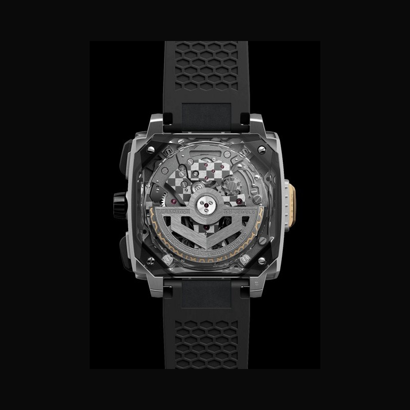 Avec des composants essentiels, en titane grade 5 également, le Calibre TH81-00 se veut incroyablement léger et affiche un poids de seulement 30 grammes, sans compromis sur la performance ou la fiabilité, même dans des conditions et des environnements exigeants. Ses composants sont décorés à la main, à l’image du drapeau à damiers emblématique de TAG Heuer, une finition visible à travers le fond de boîte, entièrement réalisé en verre saphir.
