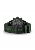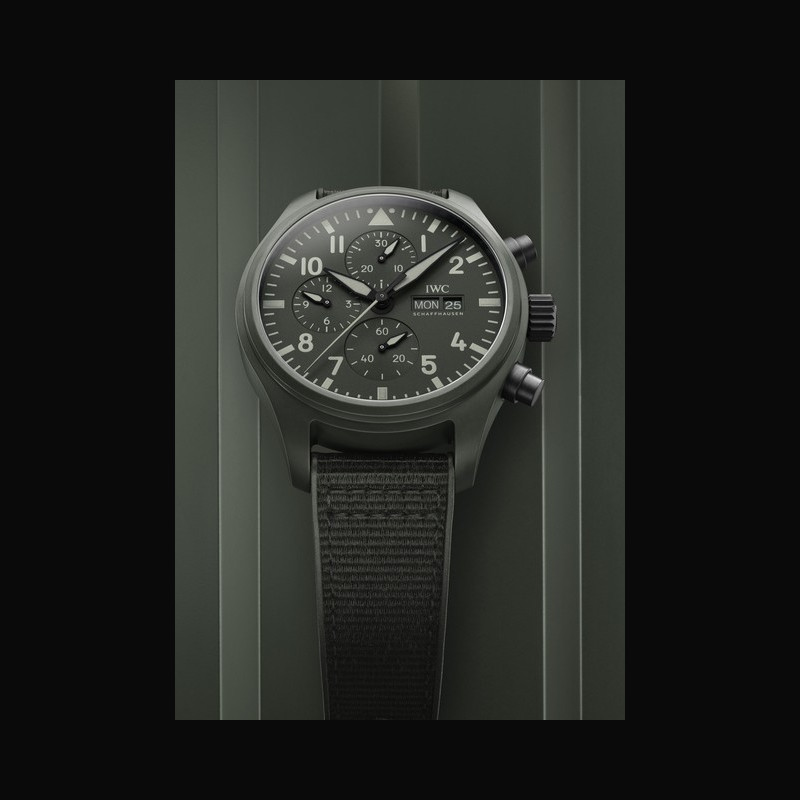 Les combinaisons de vol des pilotes ont inspiré la nuance distinctive de la Montre d’Aviateur Chronographe TOP GUN Édition « Woodland » (réf. IW389106). Récemment mis au point, ce vert « IWC Woodland » est utilisé pour le boîtier en céramique et le cadran tandis que les chiffres et les index sont imprimés dans une nuance plus claire. Les poussoirs et le fond du boîtier sont réalisés en Ceratanium® noir mat. Développé par IWC, ce matériau associe la légèreté et la robustesse structurelle du titane avec une dureté et une résistance aux rayures similaires à celles de la céramique. Un bracelet en caoutchouc vert assorti avec insert en textile parachève le design.