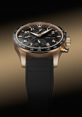 La Montre d’Aviateur Performance Chronograph 41 (réf. IW388309) possède un boîtier en or rouge 750/1000 avec fond en verre saphir, un cadran laqué noir et une lunette en céramique noire avec échelle tachymétrique. Elle est portée par Joshua Pearce, le personnage de Damson Idris. Le boîtier, les poussoirs et la couronne en or rouge 750/1000 sont associés à des appliques et des aiguilles dorées revêtues de Super-LumiNova® blanc. Le cadran noir rehaussé d’une finition vernie est le résultat d’un processus de production de haute ingénierie, les compteurs à 3, 6 et 9 heures étant chacun imprimés et finis à la main. Les index, les chiffres et le triangle iconique à 12 heures sont des appliques dorées, qui ont été polies à la main et garnies de Super-LumiNova®. Le garde-temps Performance Chronograph 41 est monté sur un bracelet en caoutchouc noir équipé du système intégré de changement de bracelet EasX-CHANGE®.