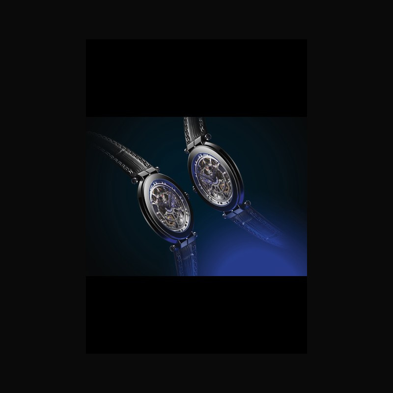 Prenant vie au rythme d’aiguilles facettées et effilées oxydées noires, ce calibre de facture suisse (Sellita) est également visible par un fond transparent. Doté de 19 rubis et générant 28 800 oscillations par heure, il dispose d’une réserve de marche de 45 heures.