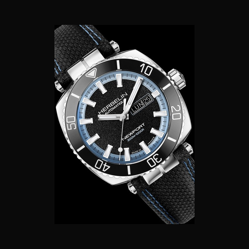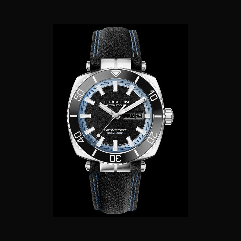 | Plus de caractéristiques : | Mouvement Automatique suisse (Sellita, calibre SW220-1) réglé par les maitres horlogers HERBELIN 26 rubis, 28 800 a/h Réserve de marche : 41 h Boitier Acier inoxydable 316L poli, brossé sur les tranches Cadran Cadran grainé mat noir Bracelet / Boucles Textile technique type cordage marin bleu Newport, avec surpiqûres bleu ciel Fermoir boucle déployante |
