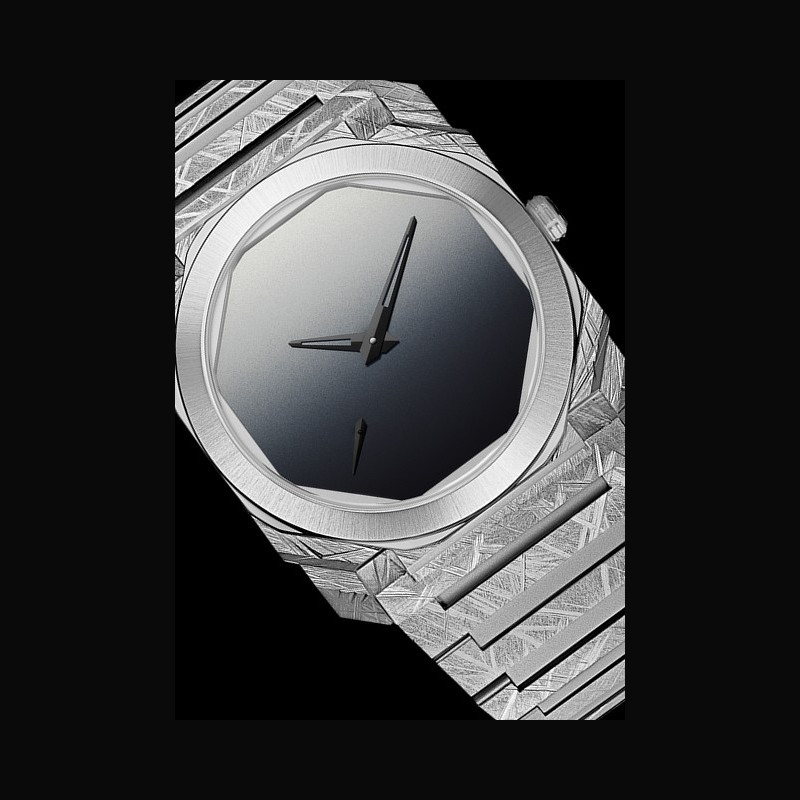 Si la complexité et la profondeur distinguent Octo Finissimo, la collection est aussi synonyme d’épure. Son boîtier, architectural et graphique, est unique en horlogerie. Fièrement inspiré de références classiques, en particulier de la forme octogonale de la basilique de Maxence et Constantin à Rome, il adopte les codes du design contemporain avec la même aisance.