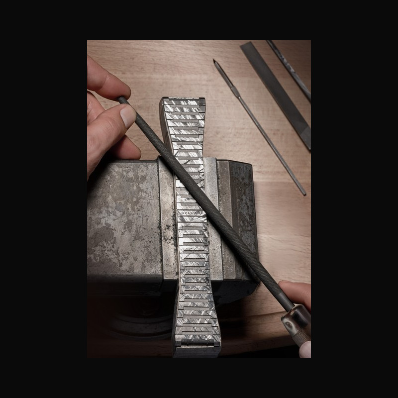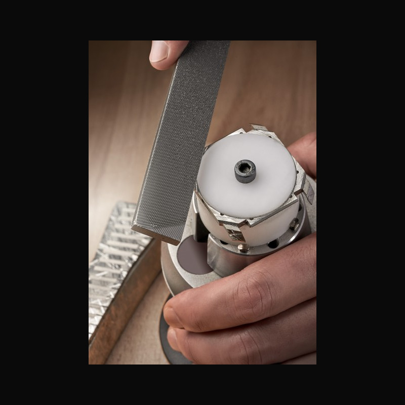 La sculpture d’un cadran dans du marbre est un véritable exploit car c’est l’un des composants horlogers les plus fins. Bien que solide à l’état brut, cette pierre devient fragile et cassante une fois finement taillée. L’opération exige donc un haut degré de raffinement technique et de savoir-faire de la part des spécialistes de la Maison qui n’égale que la précision requise pour créer un tourbillon volant.