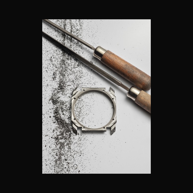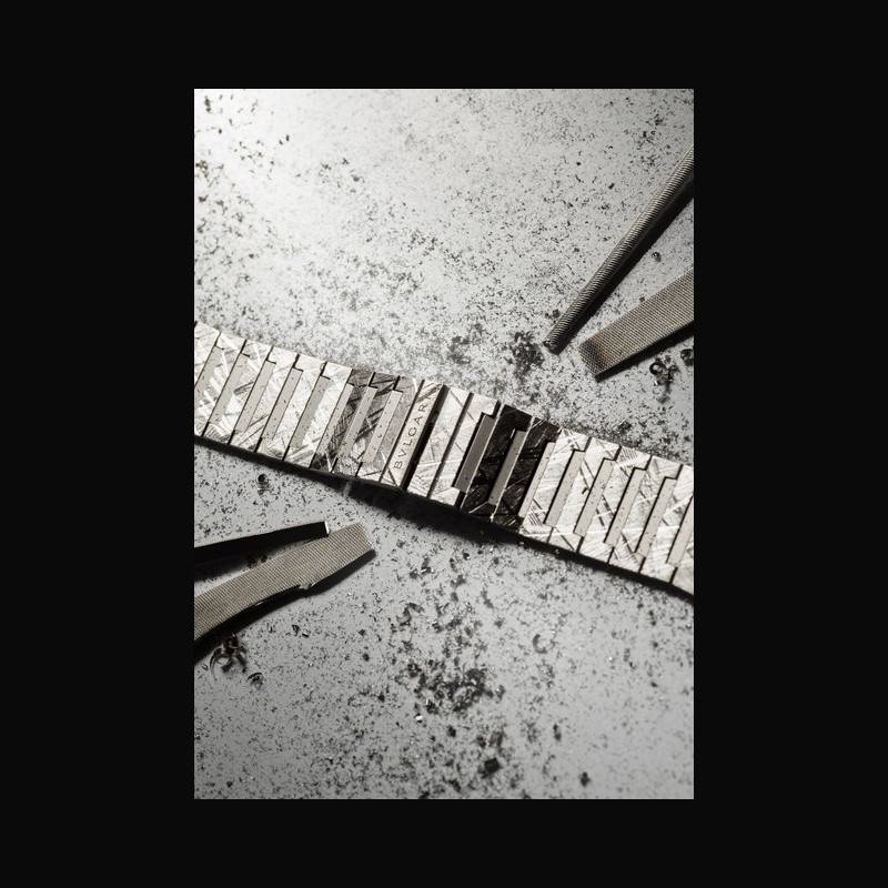 Au fil des années, Bvlgari a invité artistes et architectes à interpréter ce boîtier emblématique. En 2020, Tadao Ando a dévoilé sa vision du temps à travers une montre en céramique noire dotée d’un fond de boîtier transparent portant la signature de l’architecte. En 2024, Laurent grasso a exploré la perception du temps à travers de subtils eflets visuels. La finition crée une impression de profondeur sublimée par un nuage de couleurs sérigraphié avec des pigments métalliques. Comme une tache de peinture sur une toile vierge, la magie d’un phénomène éphémère est immortalisée à la surface de ce garde-temps.