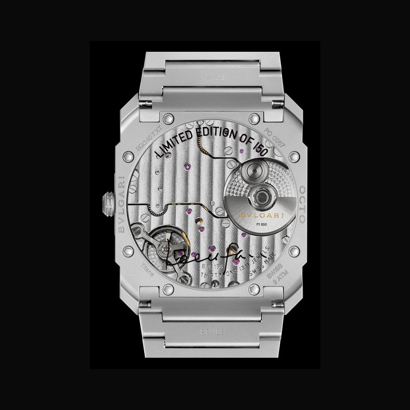 La montre est animée du calibre manufacture BVL 138 à micro-rotor de seulement 2,23 mm d’épaisseur, pour une hauteur totale de 5,5 mm. Sur le fond du boîtier, la signature manuscrite de Lee Ufan transforme cet objet intime en véritable œuvre d’art. Après tout, l’imagination est une question de finesse.