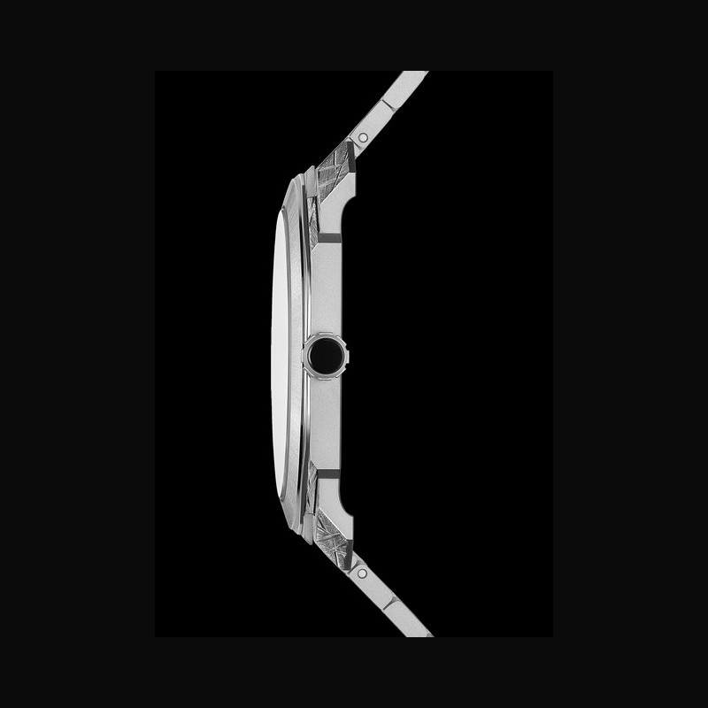 Le boîtier Octo Finissimo ne se contente pas d’accueillir le cadran miroir délicatement accentué d’aiguilles noires : il le sublime de manière saisissante. La montre avec boîtier et bracelet en titane est produite en édition limitée à 150 exemplaires, finis à la main avec un traitement de surface en titane unique.