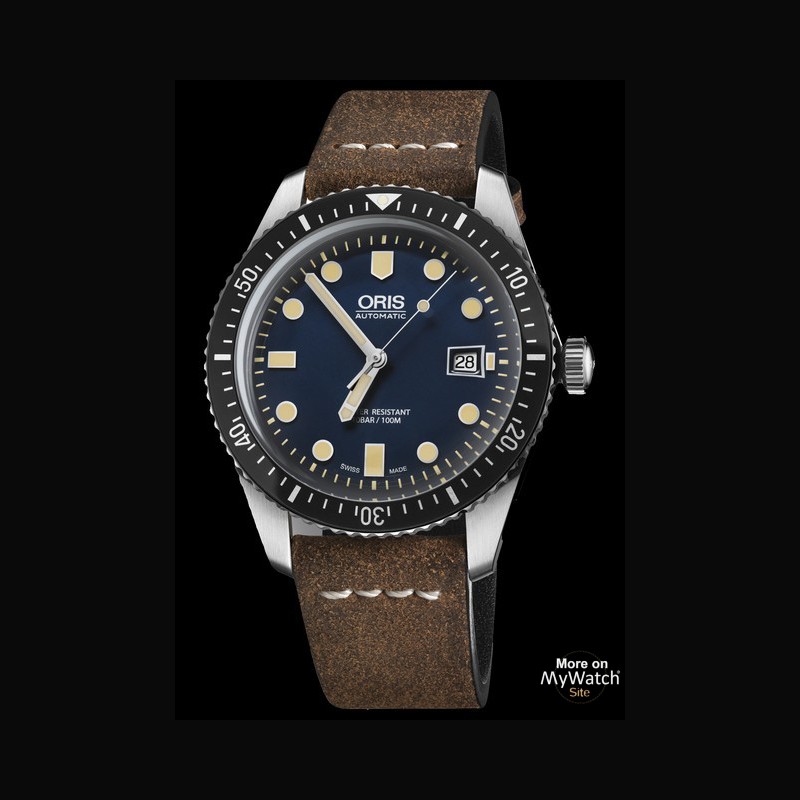 Pour la première fois, la Divers Sixty-Five est dotée d’un cadran bombé bleu, contrasté d’éléments de couleur crème qui complète son look vintage. Un style qu’elle affirme avec de nouveaux bracelets en cuir vieilli ou en textile de type NATO (des bracelets en caoutchouc noir ou en acier inoxydable son également disponibles). Au dos du boîtier est gravé le blason historique Oris, logo de la marque à l’époque.