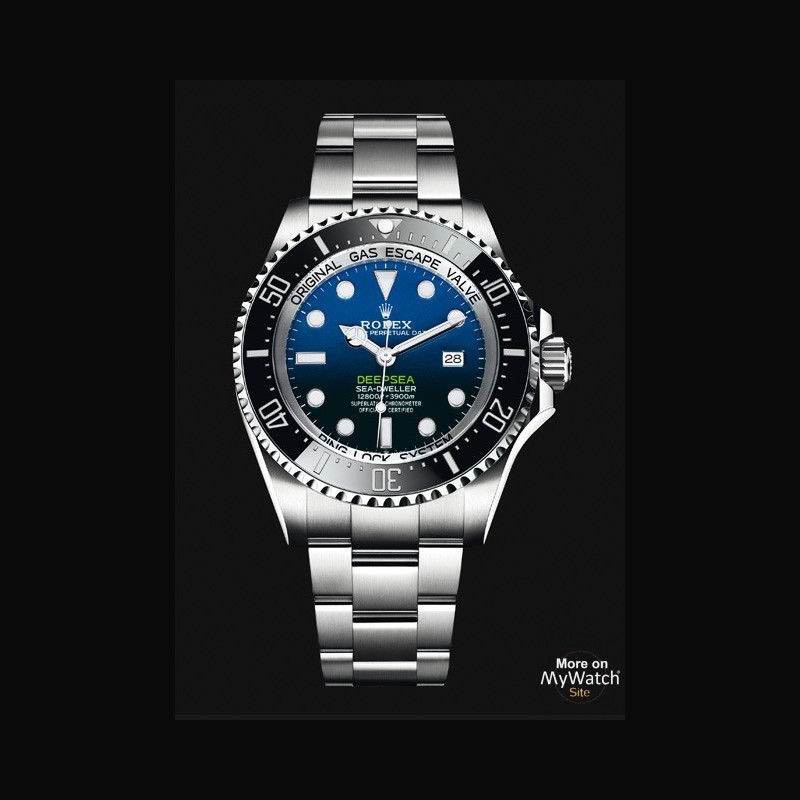 Réalisée en acier Oystersteel, elle se pare d’un cadran D-blue qui présente un dégradé allant du bleu nuit au noir intense. Ce cadran a été lancé en 2014 sur une version commémorative en l’honneur de l’expédition DEEPSEA CHALLENGE, qui, avec le soutien de Rolex et de la National Geographic Society, a conduit le réalisateur et explorateur James Cameron au point le plus profond des océans, à 10 908 mètres sous la surface, dans la fosse des Mariannes.