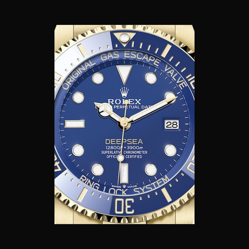 La Rolex Deepsea est une parfaite démons- tration de la capacité d’innovation de Rolex. Garantie étanche jusqu’à 3900 mètres, cette montre de plongée pour les grandes profondeurs inaugurait, à son lancement en 2008, le système Ringlock – une architecture de boîtier inédite qui lui permet de résister à la pression régnant à cette profondeur extrême. Tout en arborant les codes esthétiques et les caractéristiques fonda- mentales des montres Professionnelles de la collection Oyster Perpetual, elle répond aux attentes les plus élevées des plongeurs professionnels en matière de résistance à la pression sous-marine, de précision et de fiabilité.