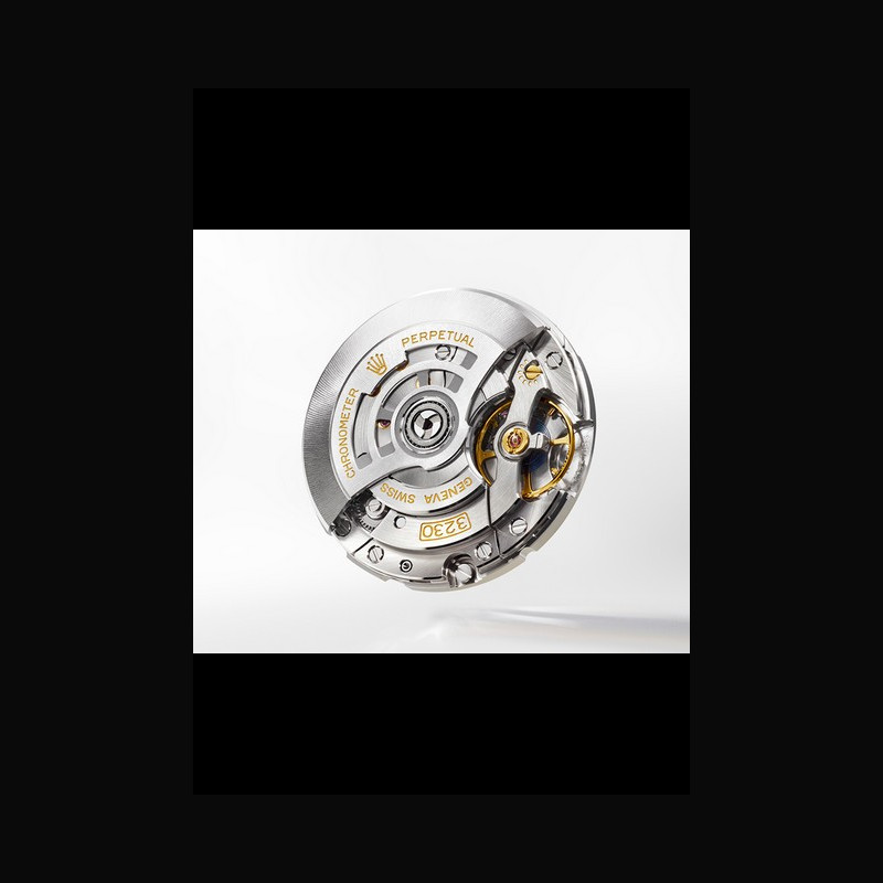 Le calibre 3230 intègre l’échappement Chronergy, breveté, qui combine un haut rendement énergétique avec une grande sécurité de fonctionnement. Réalisé en nickel-phosphore, cet échappement résiste aux champs magnétiques élevés. Le mou- vement comprend aussi le spiral Parachrom bleu. Produit dans un alliage paramagnétique qui lui confère une résistance aux champs magnétiques élevés, ce spiral présente également une grande stabilité face aux variations de température ainsi qu’une haute résistance aux chocs. Il est en outre muni d’une courbe terminale Rolex, qui assure la régularité de la marche dans toutes les positions.