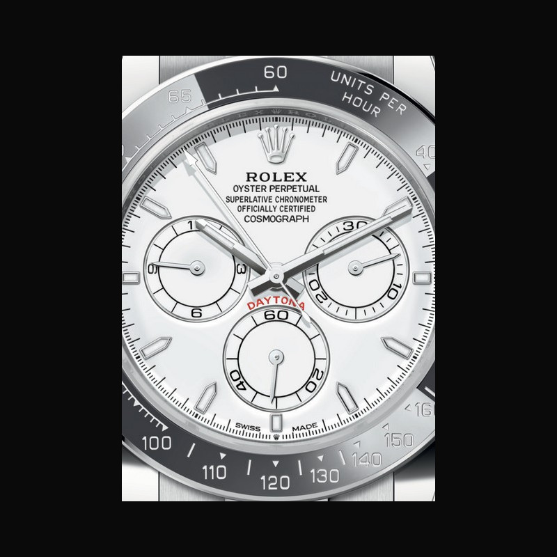 L’Oyster Perpetual Cosmograph Daytona bénéficie de la certifica-tion Superlative Chronometer. Délivré à chaque montre qui sort des ateliers de Rolex, ce titre exclusif atteste ses excellentes performances au porter. Cette certification interne est rigoureu-sement contrôlée par des instances suisses indépendantes et reconnues au niveau international.