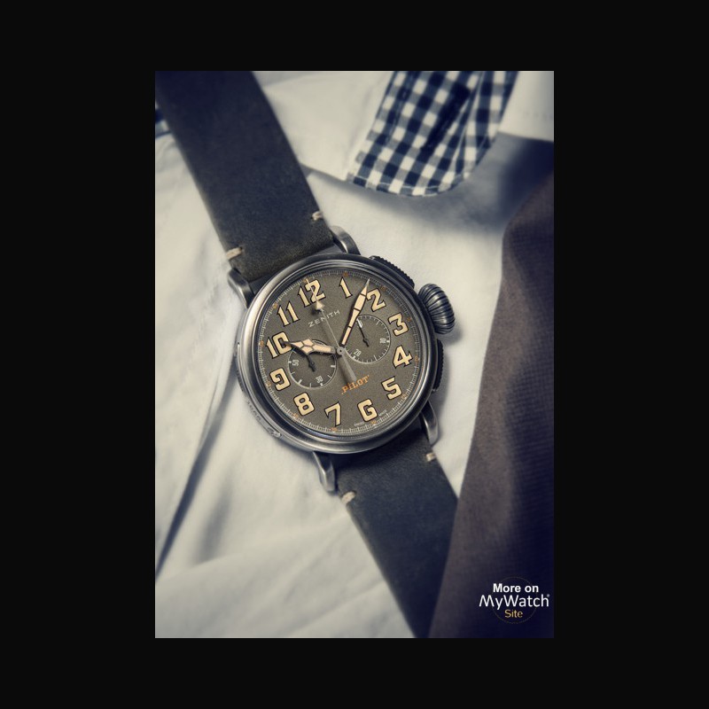 Une apparence fonctionnelle. Des attributs retravaillés pour vriller le bitume. L’esprit des motos Café Racer trouve écho dans le moteur du modèle Heritage Pilot Café Racer. Nulle place au superflu : technique, performance et précision sont au cœur de ce mouvement de légende. Issu d’une lignée mythique – le chronographe de série le plus précis au monde conçu par Zenith en 1969 – le calibre chronographe El Primero 4069 à remontage automatique bat à la cadence effrénée de 36’000 alternances par heure, pour un affichage du chrono au 1/10e de seconde. Il propose les fonctions heures et minutes centrales, petite seconde à 9h et chronographe, pour une réserve de marche de plus de 50 heures. Note finale, un bracelet de force en nubuck gras doublé de caoutchouc, muni d’une boucle ardillon en titane, souligne la nature authentique de cette montre pour férus de belle mécanique et de grands espaces.