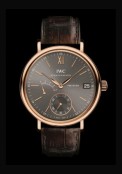 Des caractéristiques stylistiques des Portofino, les designers IWC n’ont pas seulement gardé le boîtier circulaire et ses cornes galbées, mais aussi le cadran: la disposition des affichages, petite seconde à «6 heures», date à «3 heures» et réserve de marche entre «8» et «9 heures», contribue à son harmonie. Les heures et les minutes sont indiquées par des aiguilles feuilles passant sur des index massifs en appliques et sur le chiffre romain XII. La Portofino Remontage Manuel Huit Jours en or rouge s’habille d’un cadran ardoise avec index également en or rouge massif ou d’un boîtier sobre en acier fin avec cadran argenté et index plaqués or rose ou avec cadran noir et index rhodiés.
