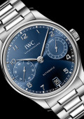 | + Plus de caractéristiques : | Mouvement Calibre de manufacture IWC 52011 Fréquence 28 800 A/h / 4 Hz Rubis 31 Réserve de marche 7 jours (168 h) Remontage Automatique Boitier Acier inoxydable Cadran Bleu Bracelet / Boucles Acier inoxydable |