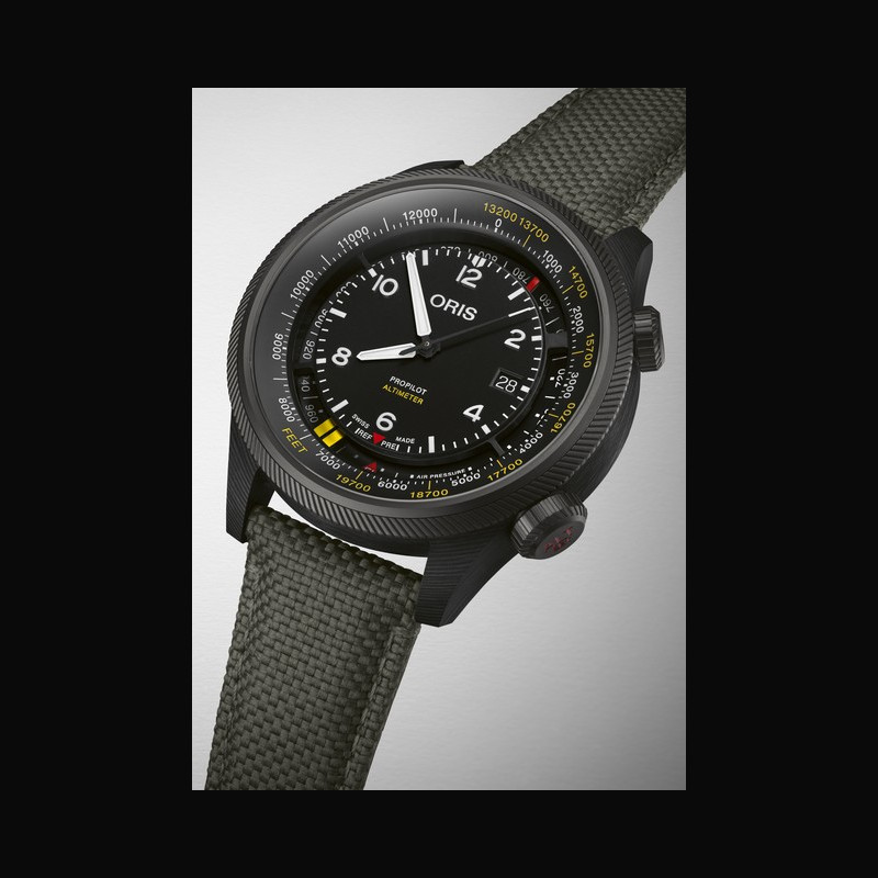 Oris améliore les performances et équipe d’un boîtier innovant en fibres de carbone la première, et unique, montre mécanique automatique au monde dotée d’un altimètre mécanique.