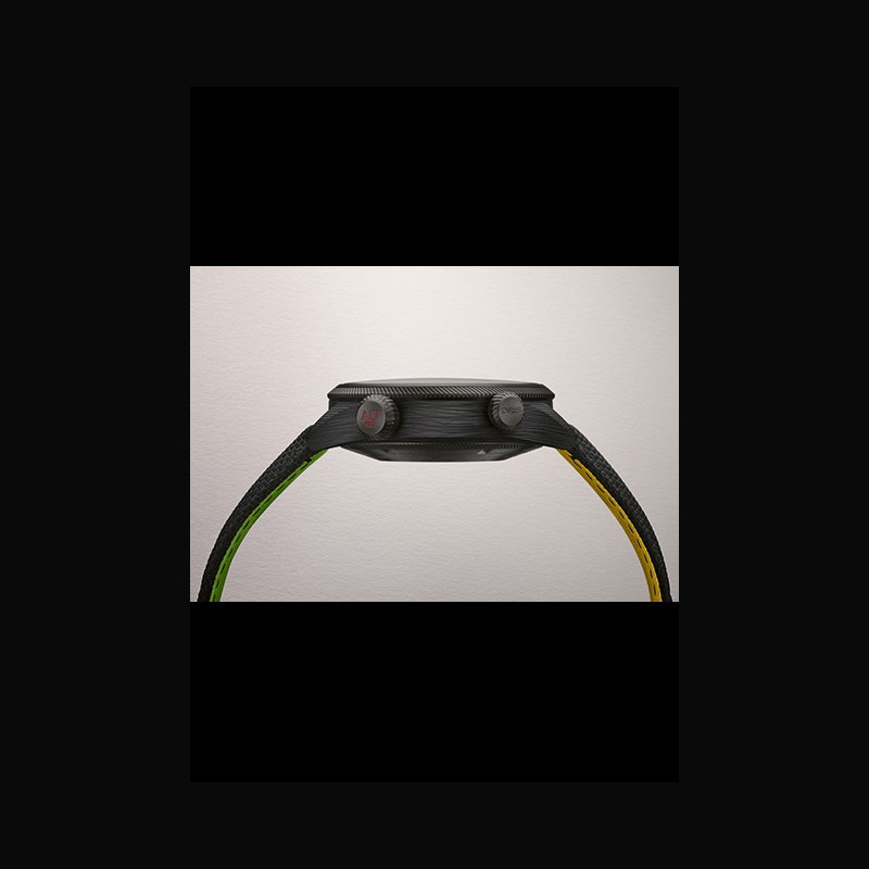 | + Plus de caractéristiques : | Mouvement Numéro Oris 793 Remontage Automatique Réserve de marche 56 heures Boitier Monobloc en composite de fibre de carbone Corne à corne 55.00 mm Cadran Noir avec détails jaunes, verts et rouges, échelle d’altitude en pieds sur la lunette intérieure du cadran Bracelet / Boucles Textile noir avec doublure en cuir jaune et vert, boucle déployante en titane gris traité PVD avec système de réglage fin Edition Limitée 250 pièces, numérotées 001/250 Disponibilité Septembre |