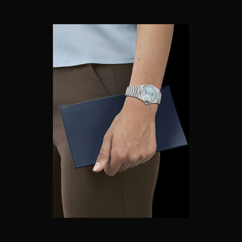 HEURES ET COULEURS : LA PRX 35 MM POWERMATIC 80 DE TISSOT SE DÉVOILE DANS UN BLEU GLACIER TRÈS ATTENDU ET CRÉE LA SURPRISE EN DORÉ