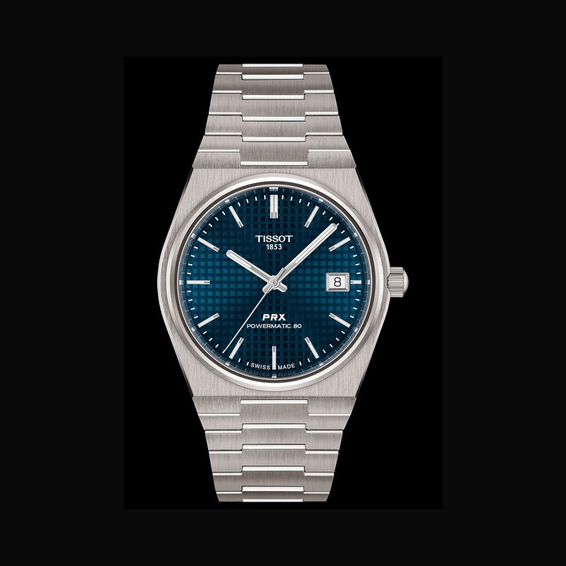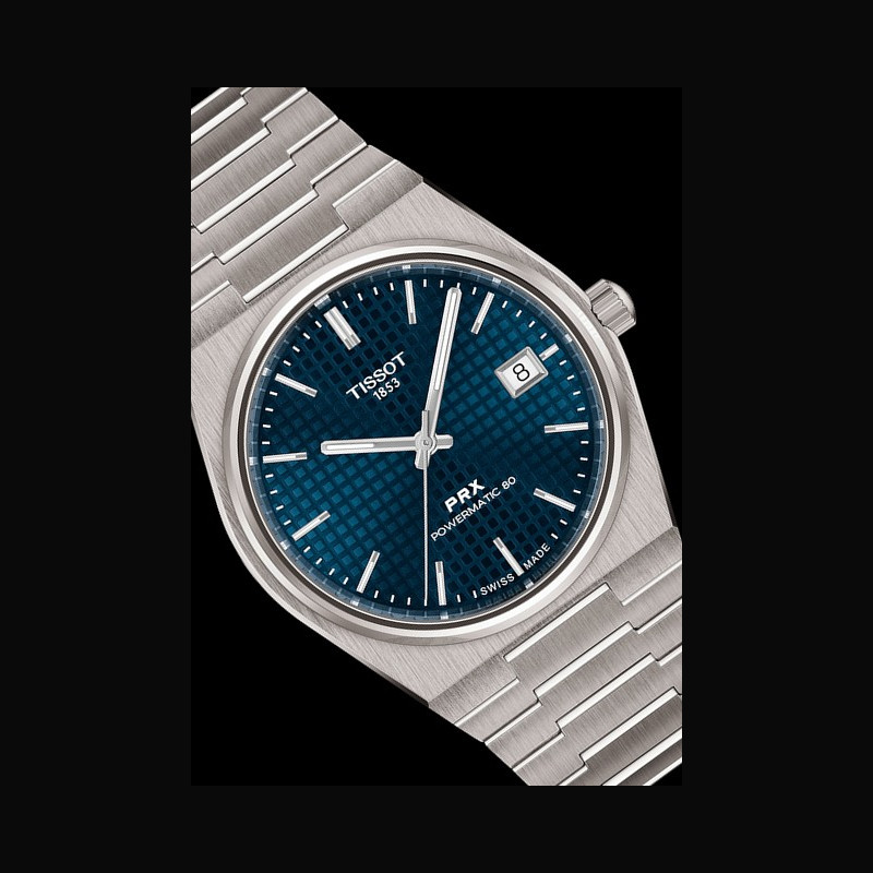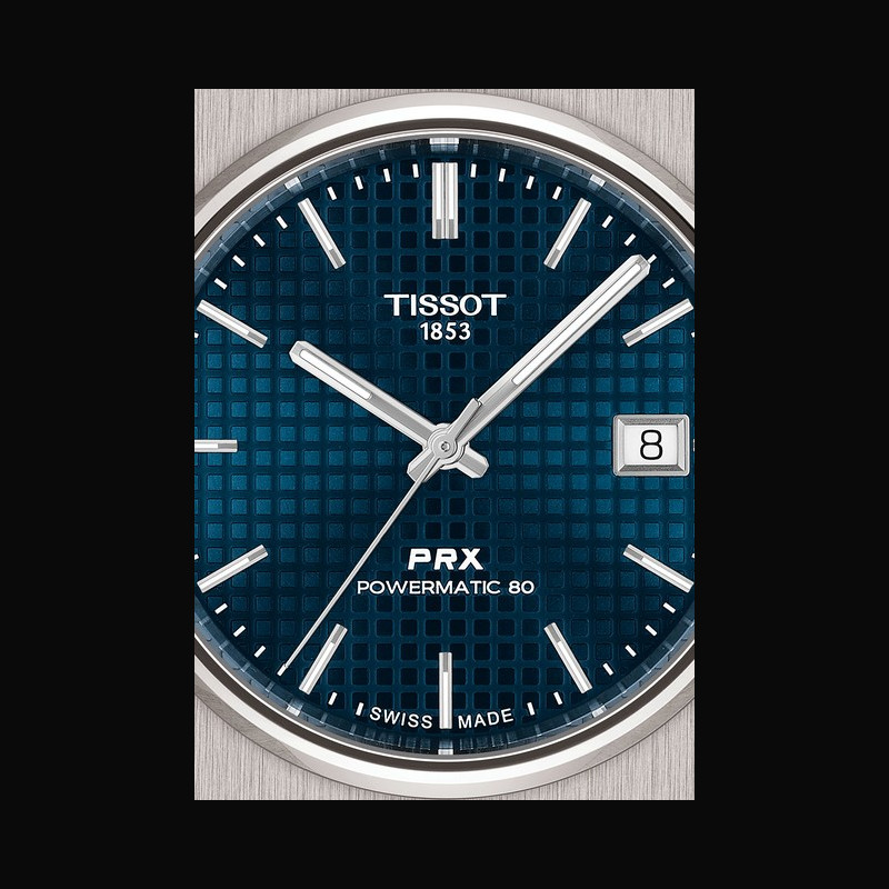 La collection Tissot PRX voit le jour en 1978. Elle se destine aux amateurs de style et d’endurance, comme en témoigne son nom : PRX, pour Précision, Robustesse et étanchéité à 10 bars. Une promesse de fiabilité au cœur d’un design raffiné. Remise au goût du jour ces dernières années, la PRX impose son esthétique à la fois classique et moderne, avec une boîte en acier inoxydable et un bracelet intégré qui se fondent harmonieusement dans une géométrie angulaire. Elle préserve ainsi l’équilibre entre force et audace qui la caractérise depuis plusieurs décennies.
