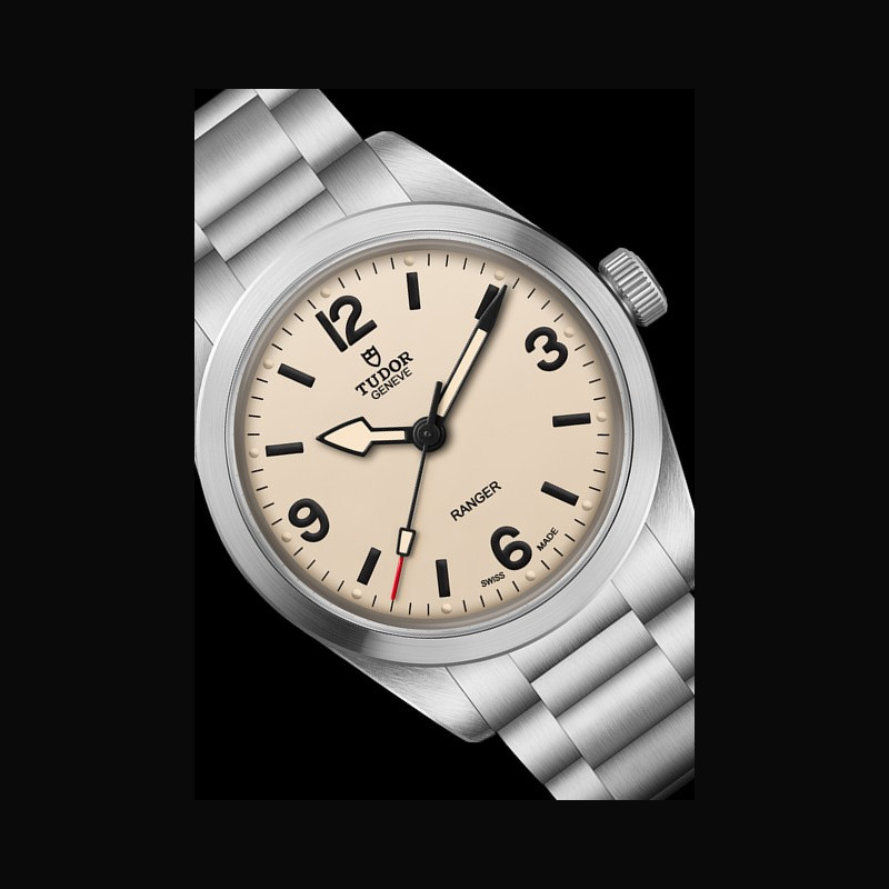 Le nouveau modèle Ranger respecte les standards esthétiques établis au cours de son histoire, en particulier un cadran avec chiffres arabes à 3, 6, 9 et 12 heures, tout en amenant des éléments techniques de pointe, notamment un Calibre Manufacture haute performance et un fermoir à ajustage rapide TUDOR « T‑fit ». Il perpétue, au sein de la collection TUDOR, la tradition de la montre d’expédition, née avec les montres Oyster Prince utilisées par les membres de la British North Greenland Expedition. La tradition d’un instrument robuste, pratique et accessible.