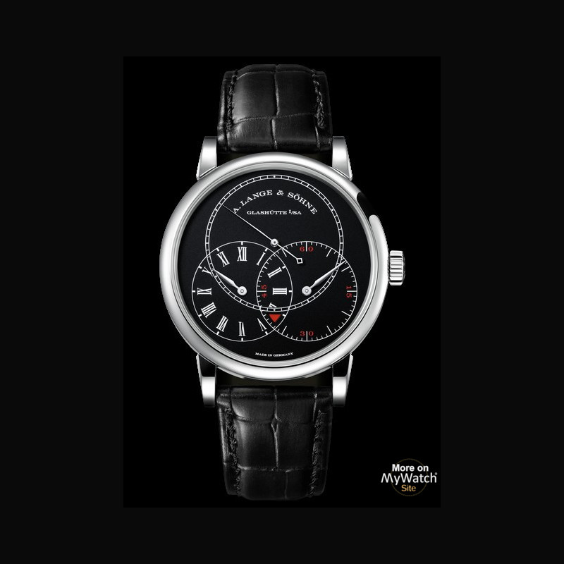 À l’occasion du salon d’horlogerie genevois SIHH 2019, A. Lange & Söhne propose une variante de ce modèle avec un cadran noir. L’utilisation parcimonieuse des couleurs et la symétrie des cercles évoquent les préceptes du mouvement Bauhaus. Le fort contraste entre les écritures blanches et le fond noir donne une apparence nouvelle et puissante à l’esthétique de régulateur caractéristique de ce modèle, rehaussée par quelques touches supplémentaires de rouge. La zone inférieure du cadran, sous l’affichage des heures et des minutes, offre un détail remarquable: dix heures avant l’épuisement de la réserve de marche, l’indicateur passe du blanc au rouge, pour rappeler au porteur qu’il devra bientôt remonter le garde-temps.