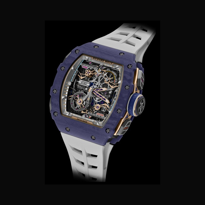 Richard Mille élève le concept de squelettisation à son apogée : le moindre pont, rouage et levier est méticuleusement optimisé pour éliminer toute matière superflue et réduire ainsi le poids global. Chaque composant du mouvement, visible ou non, présente un très haut niveau de finition, obtenu au terme d’innombrables heures d’un travail artisanal minutieux grâce à la mise en œuvre d’une grande variété de techniques.