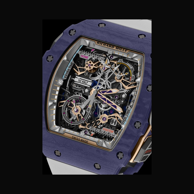 La relation entre Richard Mille et le monde du football a débuté avec la RM 11-01 et la RM 11-04 Roberto Mancini, qui introduisaient un affichage innovant des temps de jeu. Perfectionnant ce concept audacieux, la nouvelle RM 41-01 Tourbillon Soccer relève un défi unique : permettre, dans le respect des codes de la Haute Horlogerie, de suivre un match en intégralité depuis le coup d’envoi jusqu’au coup de sifflet final en enregistrant chaque but.