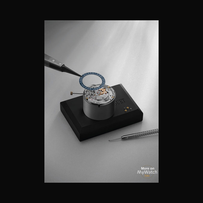 La Petite Tapisserie de la première Royal Oak a été initialement créée et produite par le prestigieux cadrannier genevois Stern Frères, qui a cessé ses activités en 2016. Après avoir fait l’acquisition d’anciennes machines à guillocher, Audemars Piguet a commencé à internaliser ces techniques et ce savoir-faire. En 2010, les premiers cadrans Petite Tapisserie produits en interne sortent des ateliers de la Manufacture. Aujourd’hui, les cadrans guillochés des modèles Jumbo sont entièrement produits dans ces ateliers. Les deux nouvelles références en or sont complétées par des index, des aiguilles et le monogramme AP en or assortis à la couleur de la boîte et reprenant le design de la Royal Oak originelle. De plus, la masse oscillante spécialement développée pour les modèles de cette année anniversaire, également assortie aux tons de la boîte, peut être admirée à travers le fond saphir.