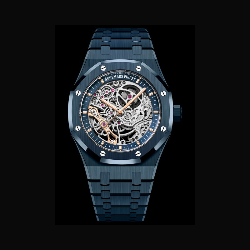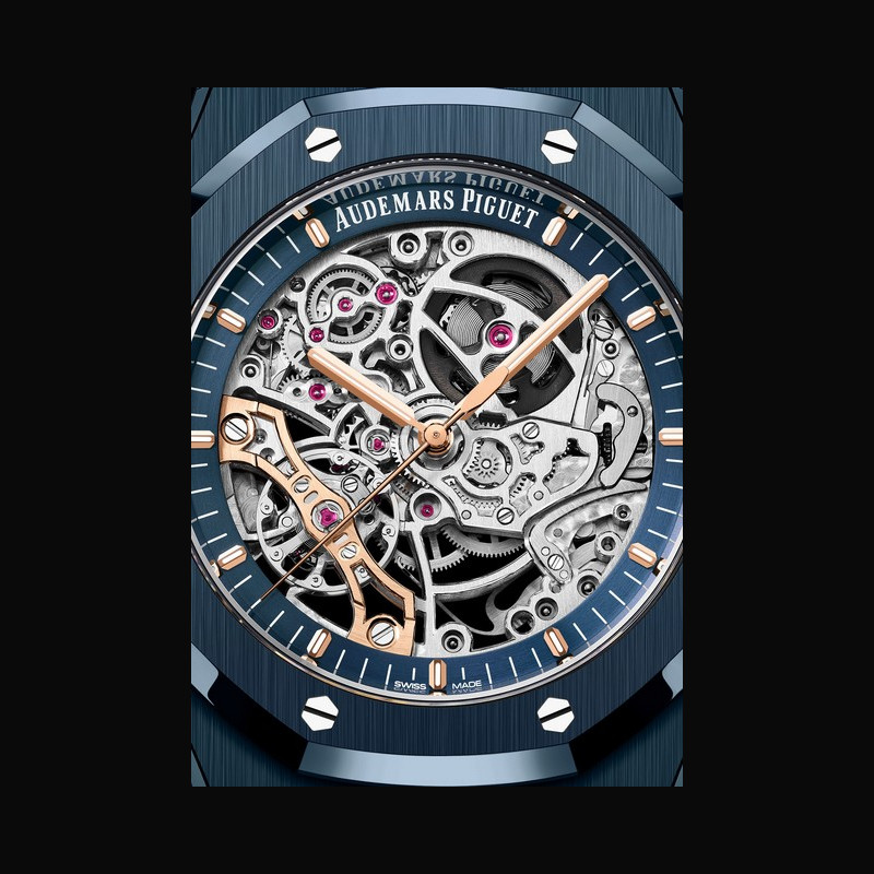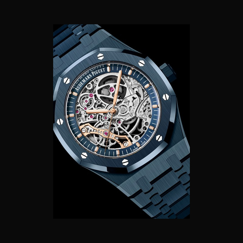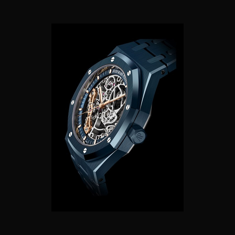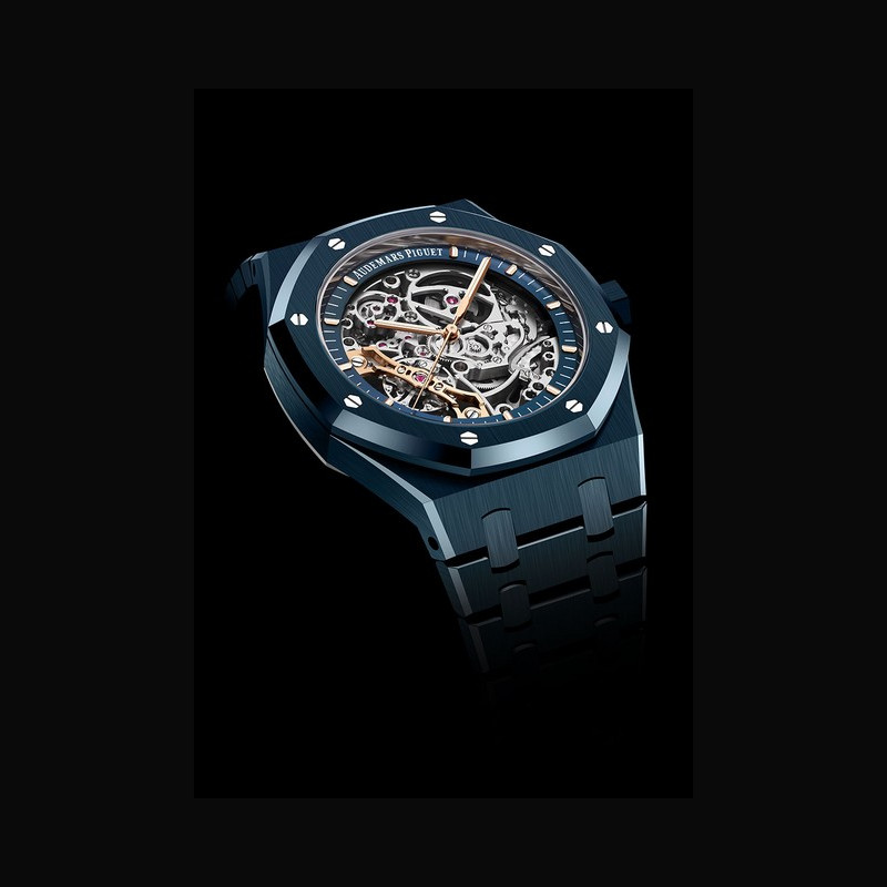 « Les développements et innovations dans la céramique sont au cœur des projets d'Audemars Piguet qui pousse toujours plus loin sa maitrise des couleurs, notamment en ajoutant aujourd'hui l’emblématique « Bleu Nuit, Nuage 50 » sur l’ensemble des composants d’habillage. »