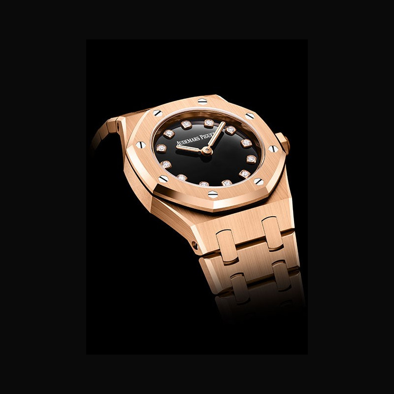 | Affichage : | Index en diamant taille brillant Aiguilles Royal Oak en or rose 18 carats avec dépôt luminescent |
