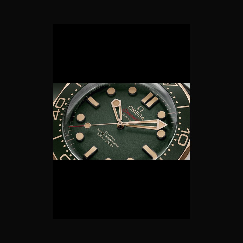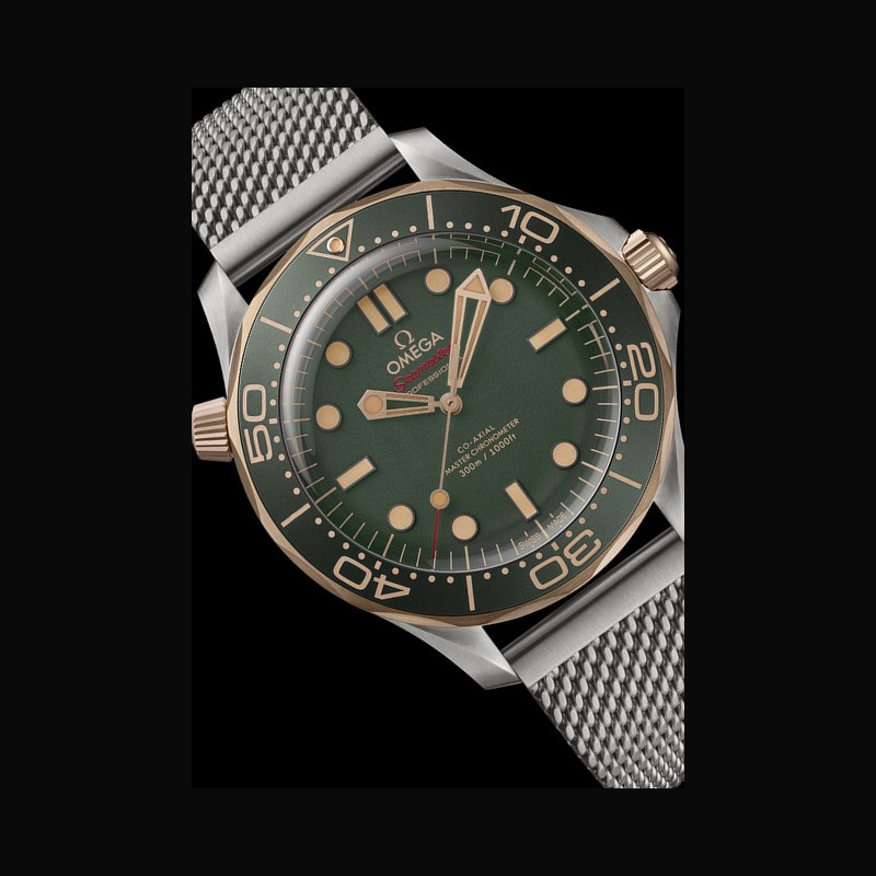 Fidèle à la dernière version de la Diver 300M, la nouvelle montre s’éloigne du style céramique familier de ces dernières années et s’inspire plutôt de la Seamaster Diver 300M Edition 007, portée dans le film de James Bond, Mourir Peut Attendre. La montre comporte notamment le même verre saphir bombé, lui conférant une esthétique vintage, tandis que le cadran vert en aluminium est présenté avec le même style de bracelet milanais que la montre Bond.